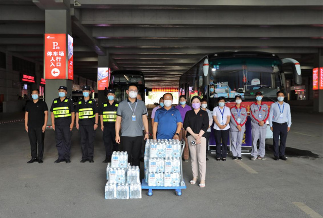 會(huì)展公司黨支部帶領(lǐng)黨員、青年團(tuán)員及工會(huì)代表向展館防疫巡查現(xiàn)場(chǎng)一線員工、奧體物業(yè)各門崗保障人員及國(guó)博核酸采樣點(diǎn)的醫(yī)務(wù)人員送去了清涼飲料及高溫慰問物資。公司領(lǐng)導(dǎo)細(xì)心詢問一線工作人員近期的工作和生活情況,真摯感謝他們?cè)谝咔榉揽丶鞍踩a(chǎn)經(jīng)營(yíng)工作期間不畏艱辛、盡職盡責(zé)的付出,希望大家在高溫酷暑天氣下工作要注意做好防暑降溫措施,合理排班,注意休息,補(bǔ)充體力,加強(qiáng)自身防護(hù),確保展館及核酸檢測(cè)點(diǎn)保障工作安全高效有序推進(jìn)。一句句暖心話語(yǔ)、一份份慰問物資,承載著公司對(duì)一線工作人員的關(guān)心與愛護(hù),也是對(duì)一線工作人員巨大的激勵(lì)和鼓舞,更增添了黨群同心、勇于奉獻(xiàn)、堅(jiān)決守護(hù)好人民群眾身體健康和生命安全的社會(huì)責(zé)任與擔(dān)當(dāng)。