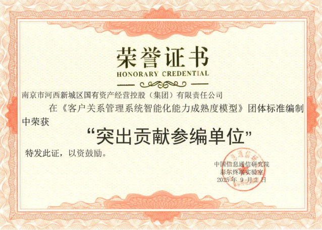2025年9月,中國信息通信研究院召開《面向企業(yè)用戶的客戶關(guān)系管理系統(tǒng)智能化能力成熟度模型》團(tuán)體標(biāo)準(zhǔn)終審研討會(huì),作為該領(lǐng)域的核心參編單位與重要實(shí)踐者,河西集團(tuán)榮獲“突出貢獻(xiàn)參編單位”。
