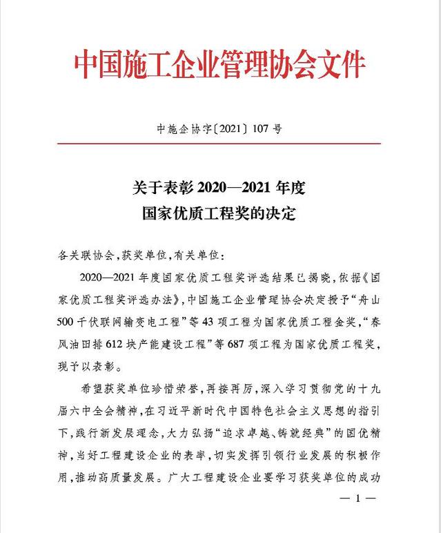 2021年12月6日,中國施工企業(yè)管理協(xié)會公布2020-2021國家優(yōu)質(zhì)工程獎獲獎名單,河西集團(tuán)新城公司所屬南京河西工程項目管理有限公司代建的招商銀行南京分行招銀大廈項目喜獲該獎項。國家優(yōu)質(zhì)工程獎設(shè)立于1981年,是經(jīng)國務(wù)院確認(rèn)的我國工程建設(shè)領(lǐng)域設(shè)立最早,規(guī)格最高,跨行業(yè)、跨專業(yè)的國家級質(zhì)量獎。