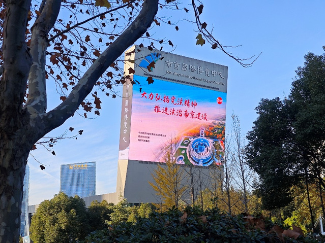 憲法是國(guó)家的根本大法,是治國(guó)安邦的總章程。今年12月4日是第十個(gè)國(guó)家憲法日,12月4日所在的周是第六個(gè)“憲法宣傳周”。為深入學(xué)習(xí)宣傳貫徹習(xí)近平法治思想,著力營(yíng)造學(xué)習(xí)宣傳憲法的濃厚氛圍,弘揚(yáng)憲法精神,維護(hù)憲法權(quán)威,集團(tuán)充分借力戶外大屏媒介載體進(jìn)行普法宣傳,會(huì)展、公園、酒店等板塊根據(jù)集團(tuán)部署聯(lián)運(yùn)同步點(diǎn)亮“大力弘揚(yáng)憲法精神、推進(jìn)法治南京建設(shè)”宣傳標(biāo)語(yǔ),利用各類(lèi)公共場(chǎng)所電子顯示屏滾動(dòng)播放,使憲法宣傳走進(jìn)千家萬(wàn)戶。