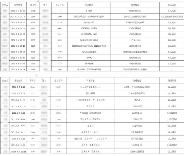 “3323房間需要辣椒醬或老干媽”、“2420房間需要免洗洗手液”、“3903房間住客喉嚨不舒服需要藥”……客服中心每天都會(huì)接到各種特殊的需求并一一做好記錄,及時(shí)聯(lián)系相關(guān)同事協(xié)助采買、送達(dá)。