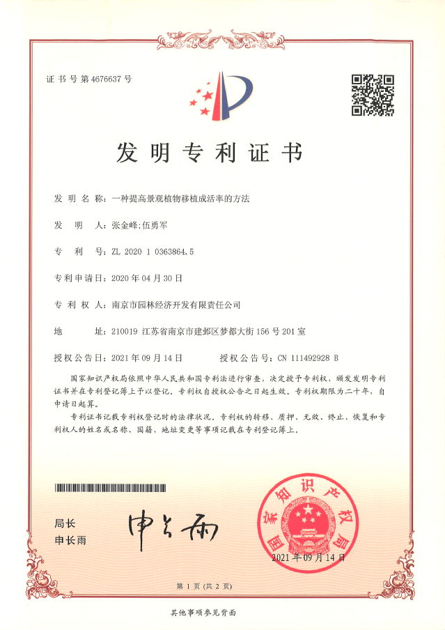 近日,河西集團南京市園林經(jīng)濟開發(fā)有限責任公司喜獲兩項國家發(fā)明專利授權。