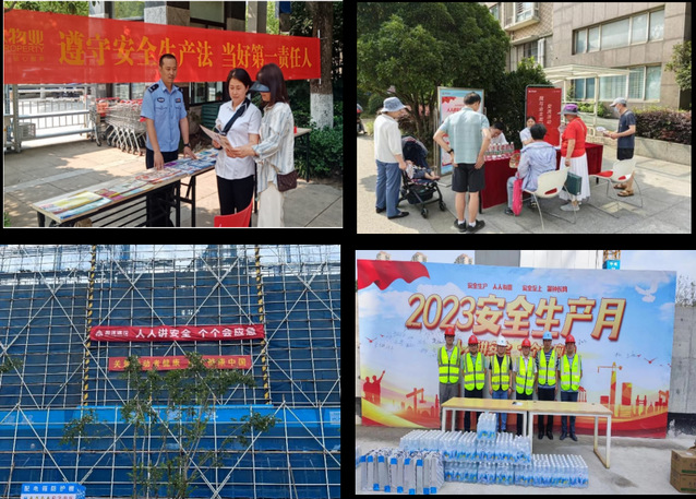 結(jié)合今年“安全生產(chǎn)月”的主題,集團通過一系列宣傳活動把“安全生產(chǎn)月”的要求和精神傳導(dǎo)到基層,組織下屬公司策劃了多個深入基層一線、群眾喜聞樂見的宣傳活動。物業(yè)公司舉辦講座6場,懸掛橫幅48條,布置海報架或張貼海報33張,派發(fā)宣傳單800余份,持續(xù)不斷增強活動影響力,形成了階段性宣傳熱潮;紫金商管公司成立義務(wù)宣傳小組,重點在社區(qū)中心、商業(yè)街區(qū)、裝修工地懸掛橫幅10余幅,現(xiàn)場發(fā)放安全生產(chǎn)小貼士、消防逃生小知識、滅火器使用方法等安全知識宣傳冊共計500余份;新城公司設(shè)計制作了安全生產(chǎn)管理宣傳單以及現(xiàn)場應(yīng)急救援知識折頁,將安全生產(chǎn)防范知識傳遞到每個項目、每個工人。